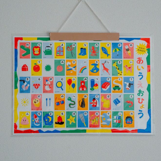 リソグラフ印刷を用いたレトロでかわいいひらがな表を作りました。